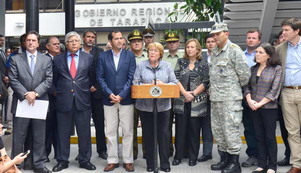 Respecto al problema de salud ocasionado por los daños que sufrió el Hospital de Iquique, la Presidenta de la República anunció que “desde Baquedano, el Ejército va a traer un hospital de campaña que permita asegurar acciones de cirugía, como también de atención de pacientes mientras se termina la evaluación de las condiciones del hospital”.