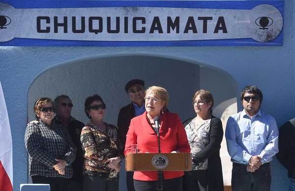 La Jefa de Estado, Michelle Bachelet, visitó esta mañana la mina a tajo abierto más grande del mundo, donde aprovechó de señalar que “nuestro cobre es el reflejo del carácter de nuestro país, un mineral confiable, como nuestra gente, que se adapta a todo tipo de circunstancia, como los chilenos ante las adversidades”.