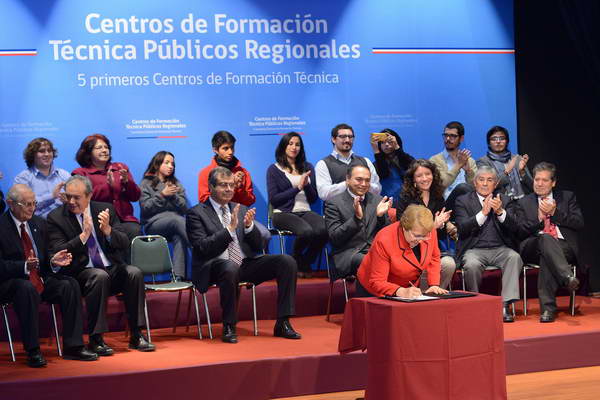 La Presidenta de la República agregó que “estos cinco centros serán el punto de partida de una red que estará en las 15 regiones, y que orientará su quehacer al desarrollo regional y se articulará en forma armónica con el resto de los niveles educacionales y con el sector productivo”.