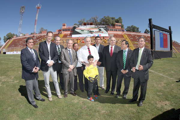 “Hoy el Estadio Muncipal de Calama es una realidad, vamos a iniciar las obras durante este año, vamos a ser capaces de construir este recinto en un plazo record de diez meses producto de una tecnología de construcción en base a hormigón prearmado y el próximo año vamos a estar inaugurando este nuevo estadio que compromete una inversión muy importante con aportes del Gobierno Regional como del Gobierno Central, el cual va ser un cambio muy importante porque va ser parte del proyecto Chileestadios que estamos impulsando y que es parte también de algo más grande aún que es el Legado Bicentenario”, expresó el Presidente Piñera.