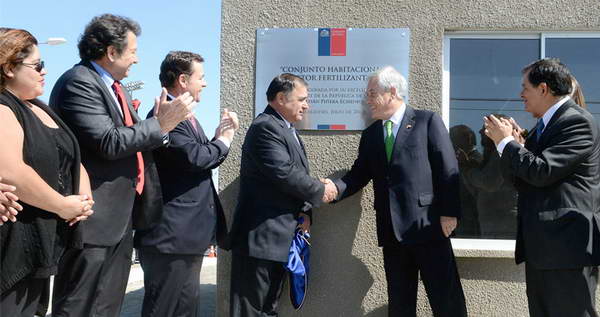 El Presidente de la República, Sebastián Piñera, acompañado del biministro de Vivienda, Urbanismo y Bienes Nacionales, Rodrigo Pérez, encabezó la entrega 440 departamentos en condominios sociales del Sector Fertilizantes en Mejillones.