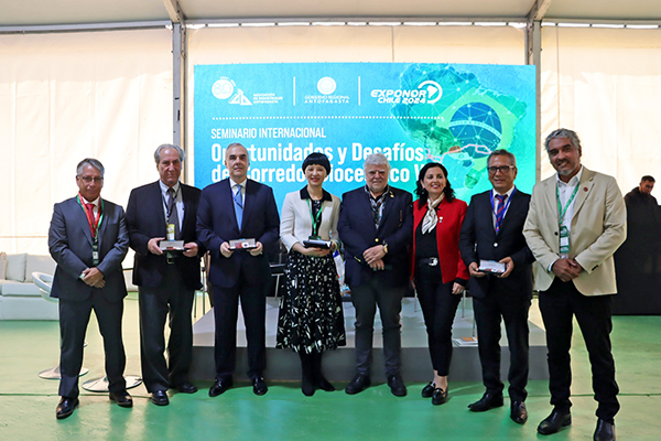 En el marco de la destacada participación de Puerto Antofagasta en Exponor 2024, la entidad fue parte del Seminario Internacional “Desafíos y Oportunidades del Corredor Bioceánico Vial”, donde el Gerente General Carlos Escobar expuso las ventajas comparativas y los proyectos estratégicos que el Puerto está desarrollando para continuar siendo una plataforma clave en la consolidación de este corredor.