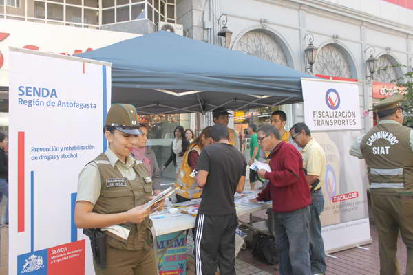 Con la idea de hacer un llamado a la comunicad antofagastina para vivir un fin de semana largo de manera tranquila y responsable, la Seremía de Transportes y Telecomunicaciones, de Gobierno, Carabineros, el Servicio Nacional para la Prevención y Rehabilitación del Consumo de Drogas y Alcohol, SENDA y campaña Aún Te Espero realizaron una campaña informativa en el Paseo Prat de la ciudad.