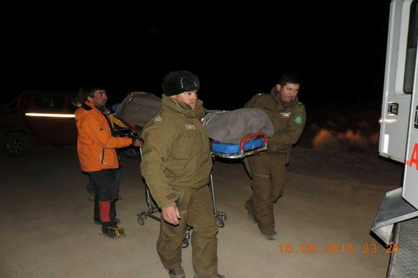 Al no contar con la experiencia y equipos necesarios de rescate, los aventureros solicitaron cooperación a Carabineros de la 2da Comisaría de San Pedro de Atacama (f), enviándose inmediatamente al lugar una patrulla de rescate del Retén Tocorpuri, quienes siendo las 1 am aproximadamente logran el rescate de la andinista, trasladándola al consultorio de San Pedro donde fue atendida por el médico de turno, quien la derivó al hospital de la ciudad de Calama para efectuar tratamientos con equipamiento tecnológico por no contar en el pueblo.