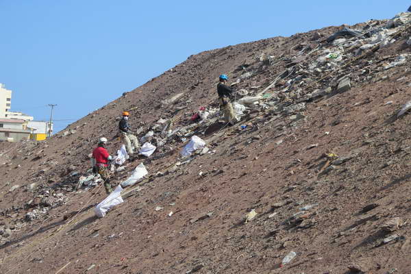 Cientos de bolsas plásticas, neumáticos, lavadoras, teclados, calaminas, filtros de aceite, gigantografías de empresas mineras, escombros de todo tipo y hasta botellas con orina retiraron los jóvenes voluntarios que llevaron a cabo este sábado un operativo de limpieza en el sector conocido como Las Vertientes en el acceso sur de la Coviefi.