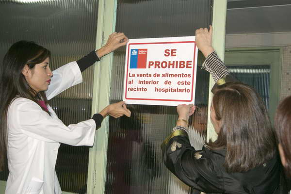 Además, junto a las autoridades de las Redes Asistenciales, se pegaron carteles dentro del hospital destinados a prohibir la venta de alimentos.