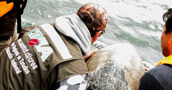 El ejemplar, una hembra adulta, fue rescatado el 9 de agosto por voluntarios del Centro de Rescate y Rehabilitación de Fauna Silvestre (CRRFS) de la Universidad de Antofagasta, donde el equipo médico evaluó el estado del animal detectando una fractura en su caparazón que le impedía sumergirse normalmente, como explicó Andrés Valenzuela, veterinario del CRRFS.