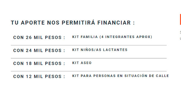 La acción solidaria tiene como objetivo concreto la recolección de dinero en efectivo para la compra y distribución de canastas específicas para los distintos perfiles de usuarios. Estas son: