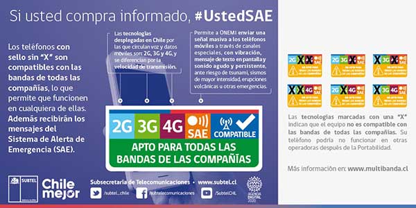 “La norma Multibanda/SAE establece que los teléfonos móviles que se venden en el país deben cumplir con un protocolo de homologación y, muy importante, incorporar obligatoriamente el Sistema de Alerta de Emergencia (SAE). Con ello entregamos certezas a los usuarios sobre la compatibilidad actual o futura del teléfono que una persona planea adquirir”, afirmó el Subsecretario de Telecomunicaciones, Rodrigo Ramírez.