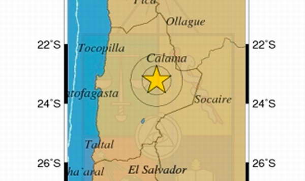 Según el Centro Sismológico Nacional, el movimiento tuvo su epicentro 37 kilómetros al noroeste de Socaire.