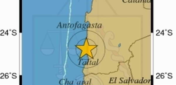 El sismo a las 6:00 p.m. hora local a 69 kilómetros al norte de Taltal, en la región de Antofagasta, según el USGS. Su hipocentro se localizó a una profundidad de 28 kilómetros.