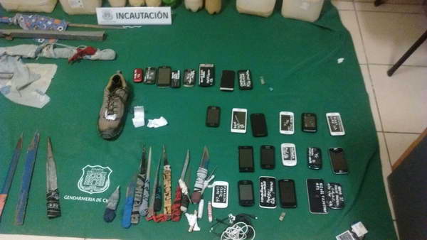 En la ocasión el personal de los grupos especializados de Gendarmería (USEP y CEAC), en conjunto con los funcionarios de la unidad penal, lograron la incautación de 25 aparatos celulares, 16 chips de celulares, 27 armas corto punzantes y 60 litros de licor artesanal.