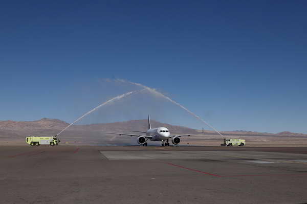 Pasada las 13 horas se concretó un importante hito para la ciudad de Calama: la primera ruta internacional del aeropuerto El Loa. El Subsecretario de Obras Públicas, Lucas Palacios, viajó hasta Calama para recibir a los más de 100 pasajeros que aterrizaron en la ciudad tras viajar desde Lima.