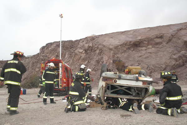 En  el sector de las  Ruinas de Huanchaca, sector sur de Antofagasta, los profesionales de la emergencia de la Tercera Compañía de Bomberos de Antofagasta, a cargo de su capitán Jurislav Yaksic Sierra demostraron sus habilidades a través de dos ejercicios  técnicos.