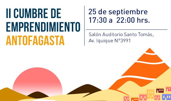 El próximo miércoles 25 de septiembre se llevará a cabo la II Cumbre de Emprendimiento de Antofagasta, una iniciativa organizada por la Asociación de Emprendedores de Chile, Asech, y apoyada por el Área de Administración de Santo Tomás, con el objetivo de reunir a emprendedores de la región para compartir experiencias, generar alianzas y redes de contacto, y prestar apoyo frente a los principales desafíos que se presentan en el mundo de los negocios.
