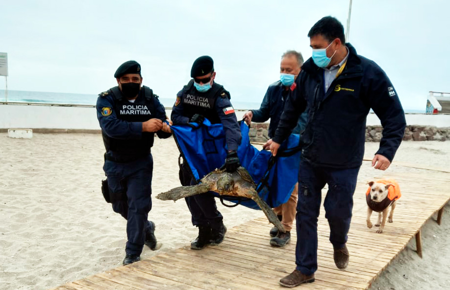 René Salinas, director regional de Sernapesca señaló “detectamos este ejemplar en el balneario municipal. Con apoyo de la Armada pudimos llevarlo hasta el vehículo de dicha institución donde fue trasladada al Centro de Rescate de la Universidad de Antofagasta donde fue evaluado, se trata de un espécimen macho, el que será tratado ya que aparentemente tiene un daño en el cuerpo, pero se encuentra bastante móvil por lo que se esperan buenas noticias respecto a su recuperación”