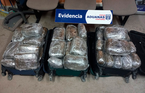 Funcionarios de la Unidad de Drogas de la Dirección Regional de Aduanas de Antofagasta lograron un importante decomiso de droga al detectar 59 kilos de marihuana ocultos en el equipaje de tres ciudadanas colombianas que viajaban en un bus interregional desde Calama con destino a Santiago.