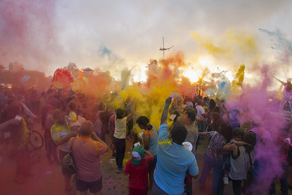 The color of time, a cargo de la compañía francesa Artonik, está inspirado en una fiesta sagrada de la India llamada Holi y reunió hoy a más de 2.500 antofagastinos en un trayecto que se inició en Prat con Balmaceda, siguiendo por Balmaceda hacia el norte para terminar en el Muelle Histórico.