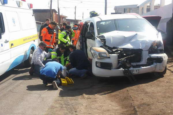 A consecuencia del fuerte impacto entre ambas máquinas 9 personas resultaron lesionadas de carácter leve, 5 de ellas viajaban en el furgón y las otras 4 en la unidad de emergencia. Todos los heridos fueron trasladados hasta la posta de emergencia de primeros auxilios del Hospital Regional Dr., Leonardo Guzmán de Antofagasta, donde recibieron las atenciones pertinentes y despachados a sus respectivos domicilios.