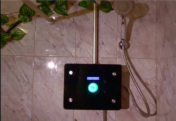 Este aparato cuenta con un contenedor de agua y un dispositivo que pone en la ducha. Este último tiene luces que se encienden de distintos colores de acuerdo a la temperatura del agua. Al abrir la llave del agua, prende una luz azul al estar fría, color verde cuando el agua está adecuada para bañarse y roja cuando está elevada la temperatura.