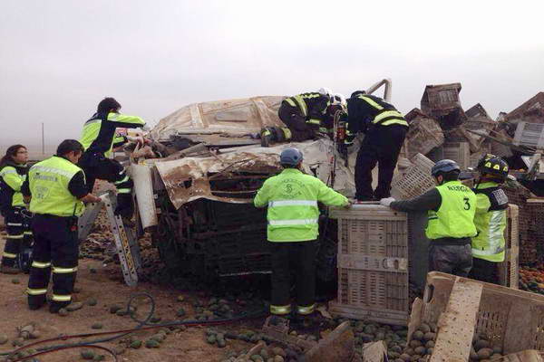 Informaciones extraoficiales señalan que el camión sufrió primero el volcamiento y posterior colisión frontal contra un vehículo menor. Ambas maquinas resultaron con daños considerables, situación que dificultó el trabajo de los bomberos, especialmente las personas atrapadas en la cabina del camión, el que también resultó prácticamente desintegrada por la fuerza del impacto.